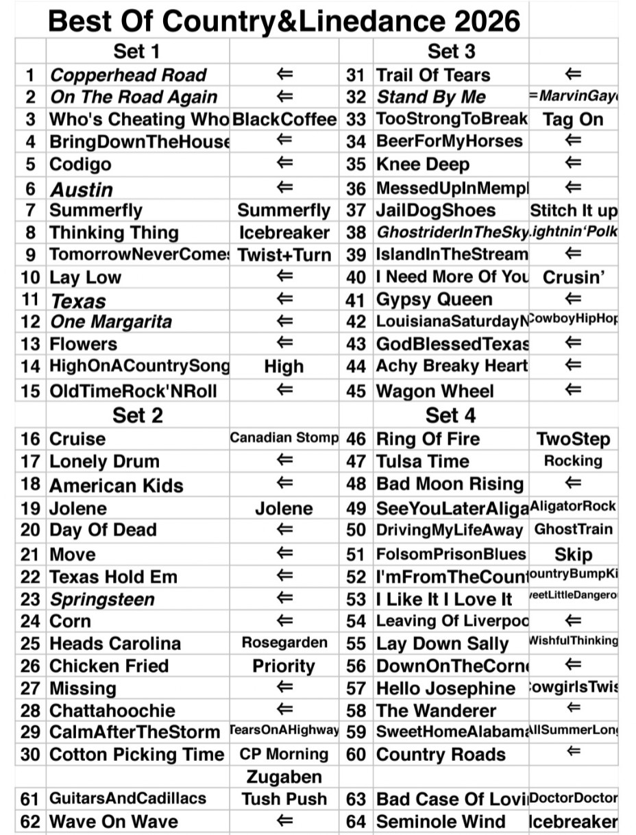 Die angegebenen Tänze sind natürlich nicht verbindlich - sie sind als Vorschläge zu sehen, wir sind viel unterwegs und sehen was wo getanzt wird, aus dieser Erfahrung heraus haben wir die Angaben zusammengestellt.